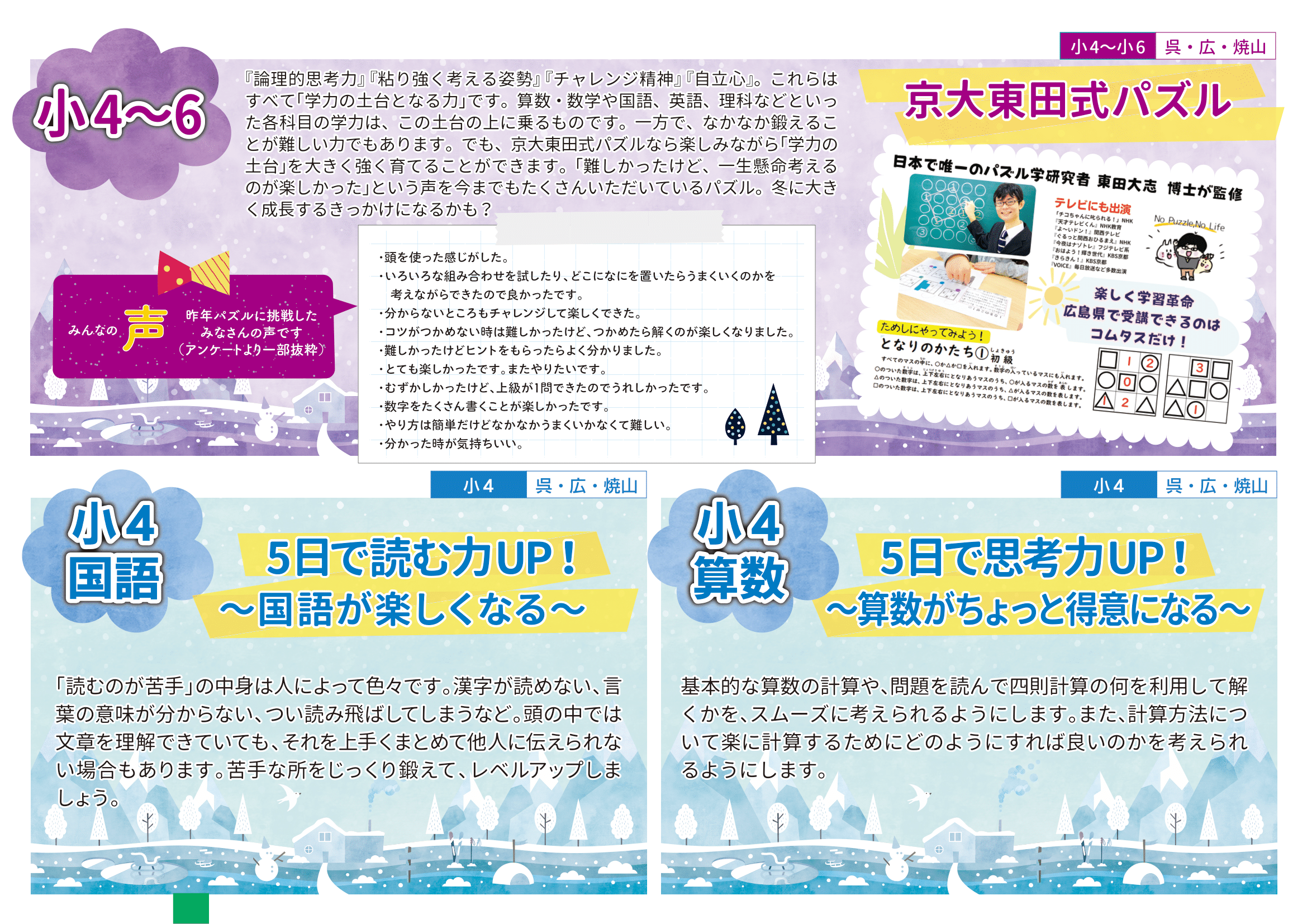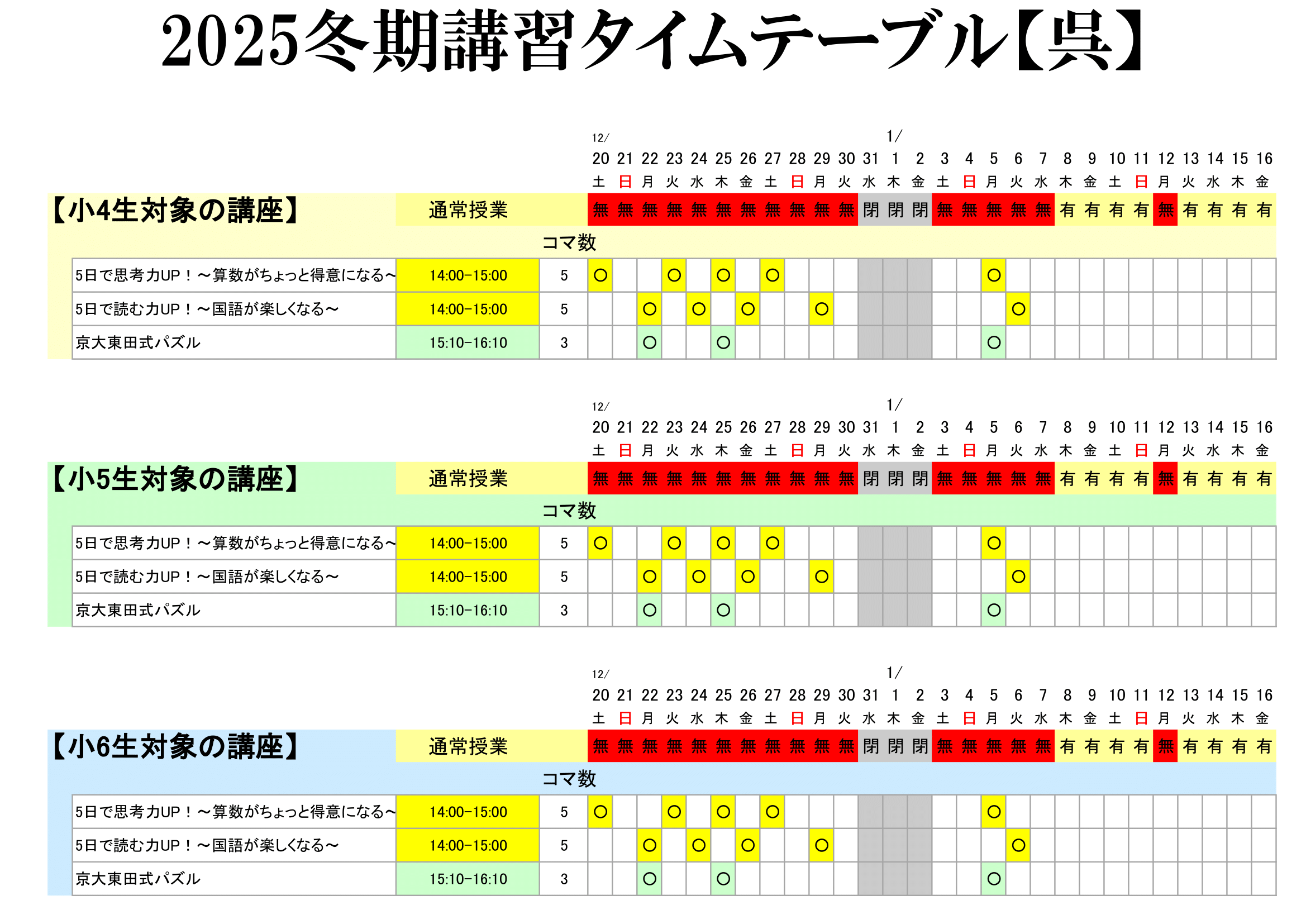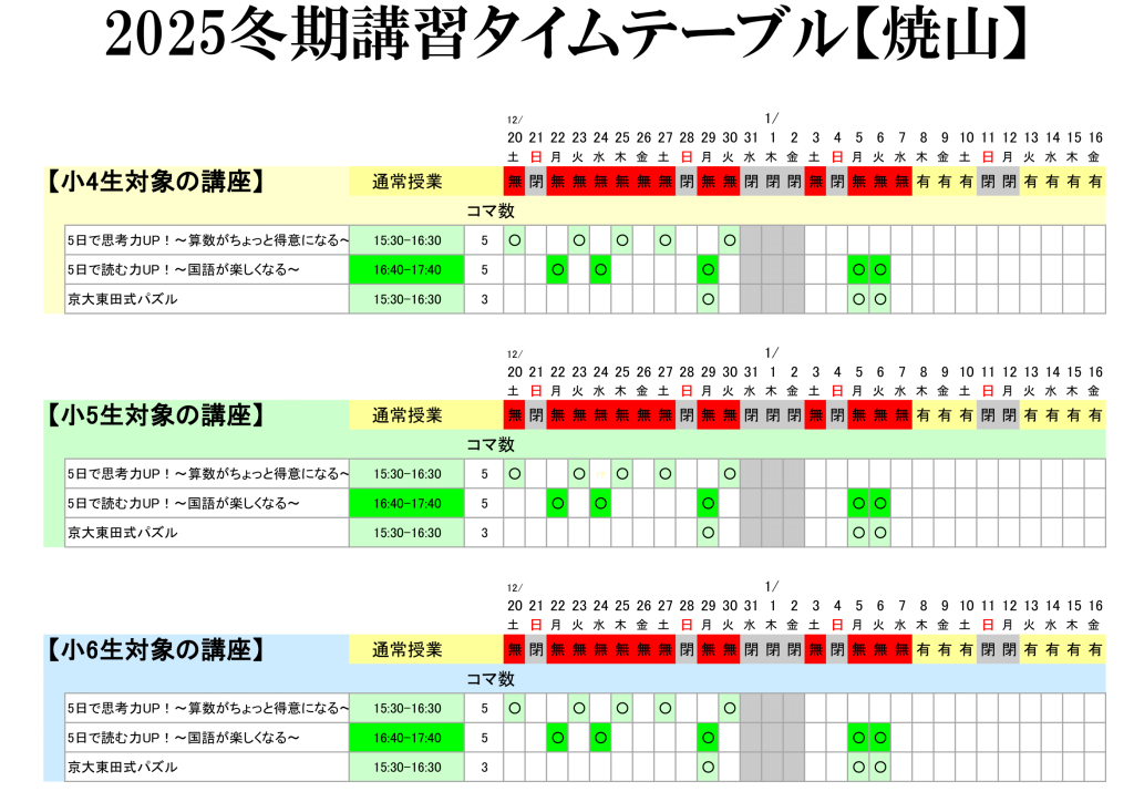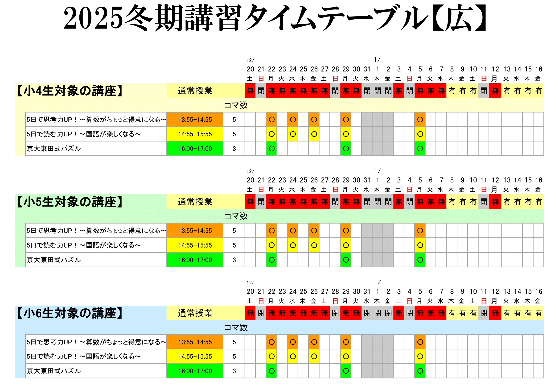 ●冬期特訓講習会日程 12/20(土)~1/7(水)
