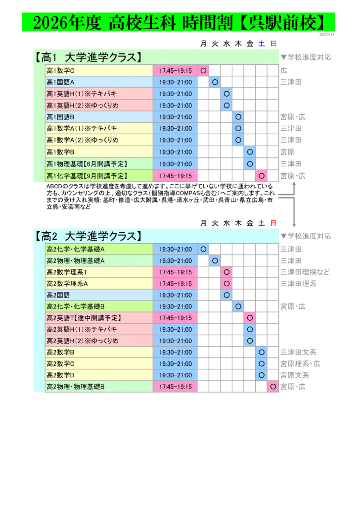 呉校  呉市中央1-6-9 センタービル呉駅前3F