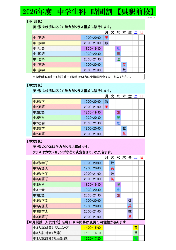 中学生科 呉駅前校
