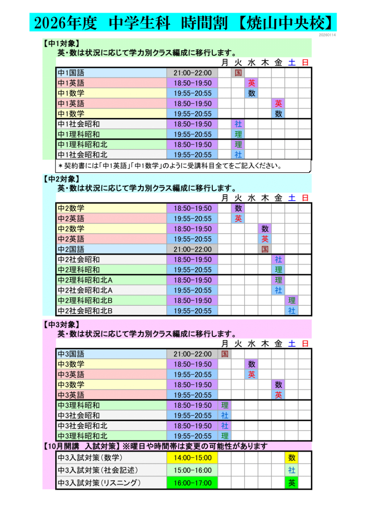 中学生科 焼山中央校